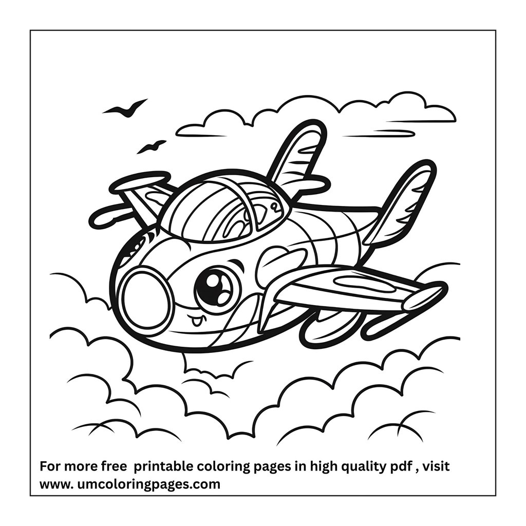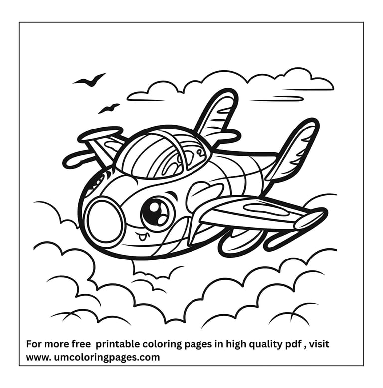 Explore airplanes and flying machines coloring pages featuring jets, helicopters, hot air balloons, blimps, and aircraft in the sky. Fun printable coloring pages that introduce kids to air transport.