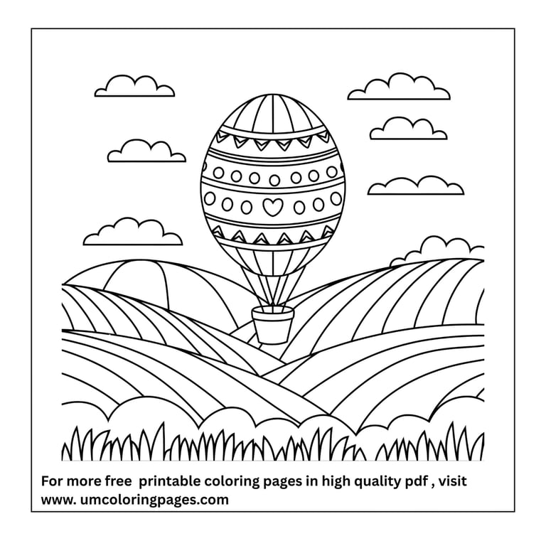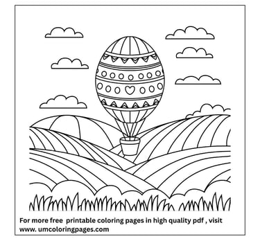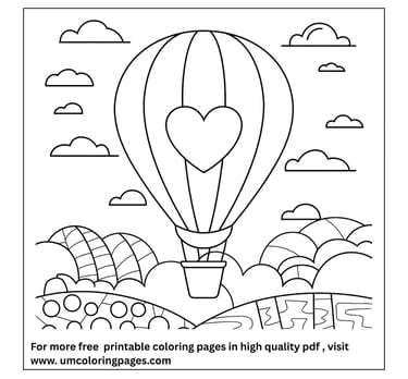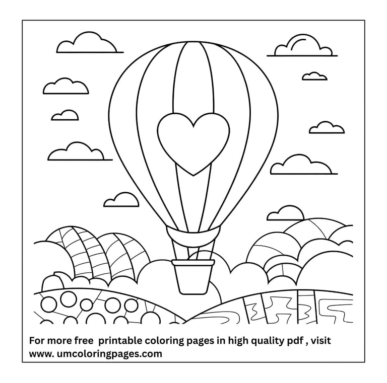 Hot Air Balloon Coloring Pages – Discover cheerful hot air balloon coloring pages with free printable PDFs, perfect for kids who love sky travel, flying balloons, and colorful adventures.