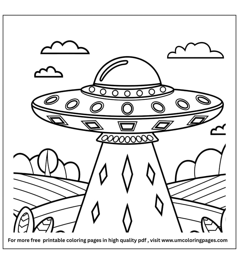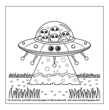 Free printable alien and UFO coloring pages for kids. Download fun space-themed coloring sheets featuring extraterrestrials, flying saucers, and spaceships.