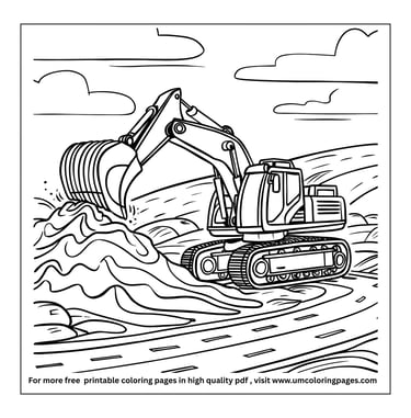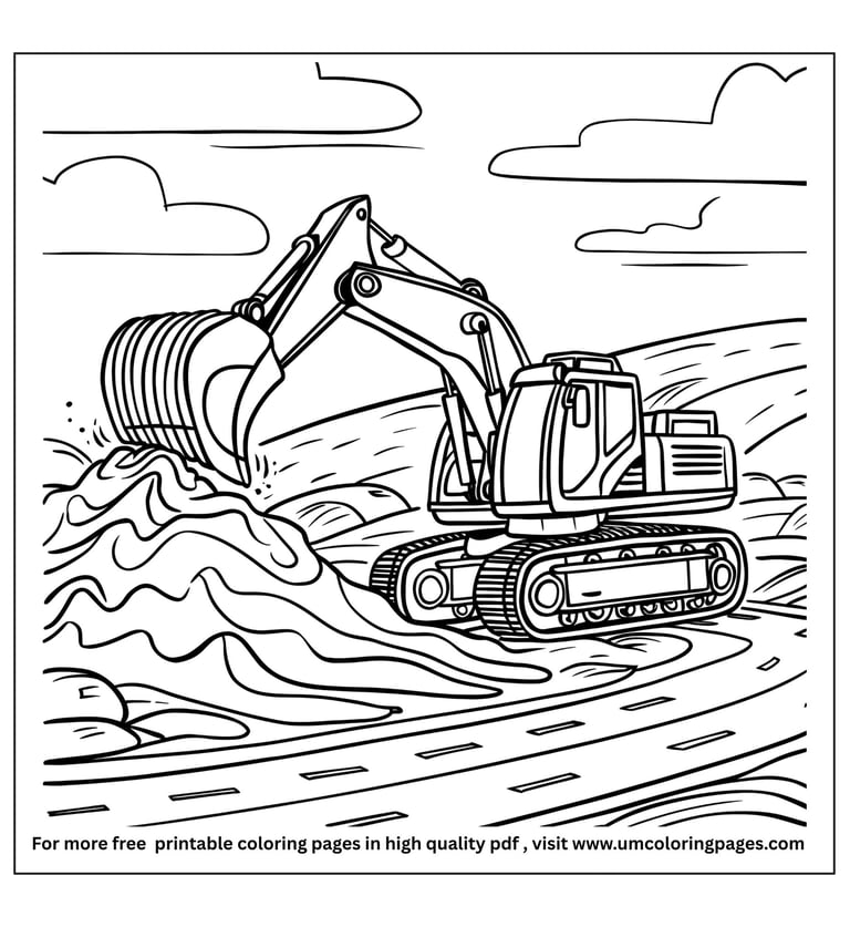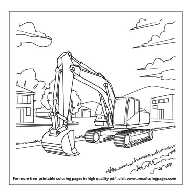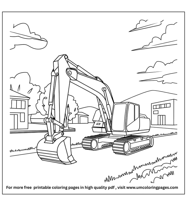 Free printable excavator coloring pages for kids. Download fun construction vehicle coloring sheets featuring diggers, backhoes, and heavy machinery. Perfect for preschool and elementary activities.