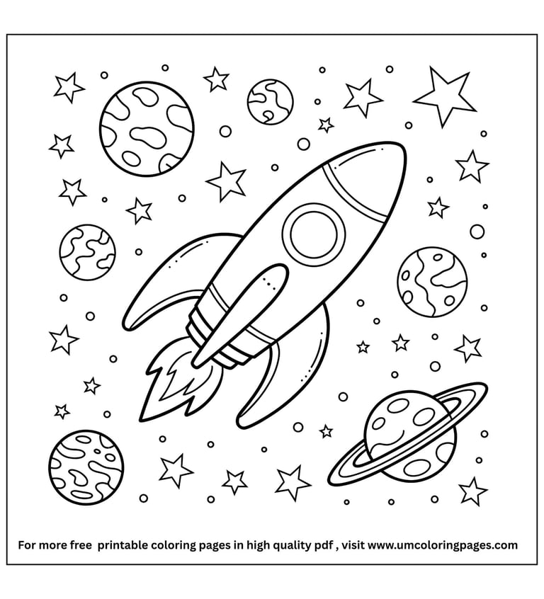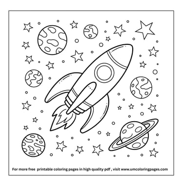 Free printable rocket coloring pages for kids. Download space-themed coloring sheets featuring rockets, spaceships, and astronauts.