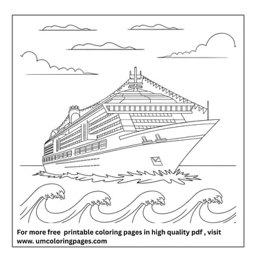 Cruise Ship Coloring Pages – Enjoy cruise ship coloring pages with free printable PDFs, perfect for kids who love big ships, ocean travel, and sea adventures.