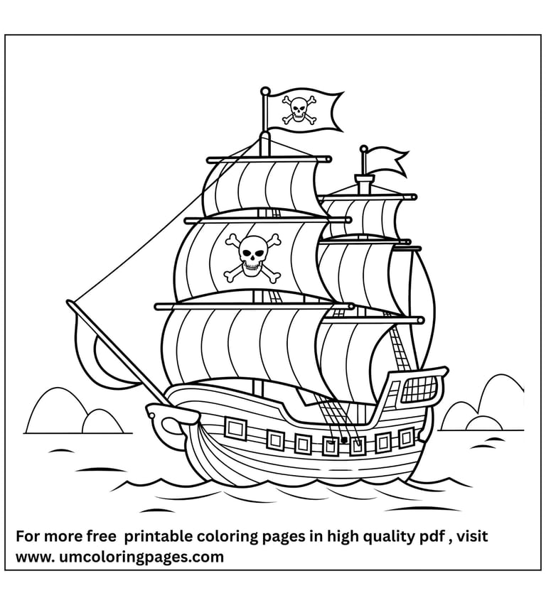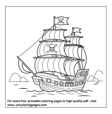 Pirate Ship Coloring Pages – Set sail with pirate ship coloring pages featuring free printable PDFs, ideal for kids who enjoy classic sailing vessels, ocean voyages, and treasure-filled adventures.