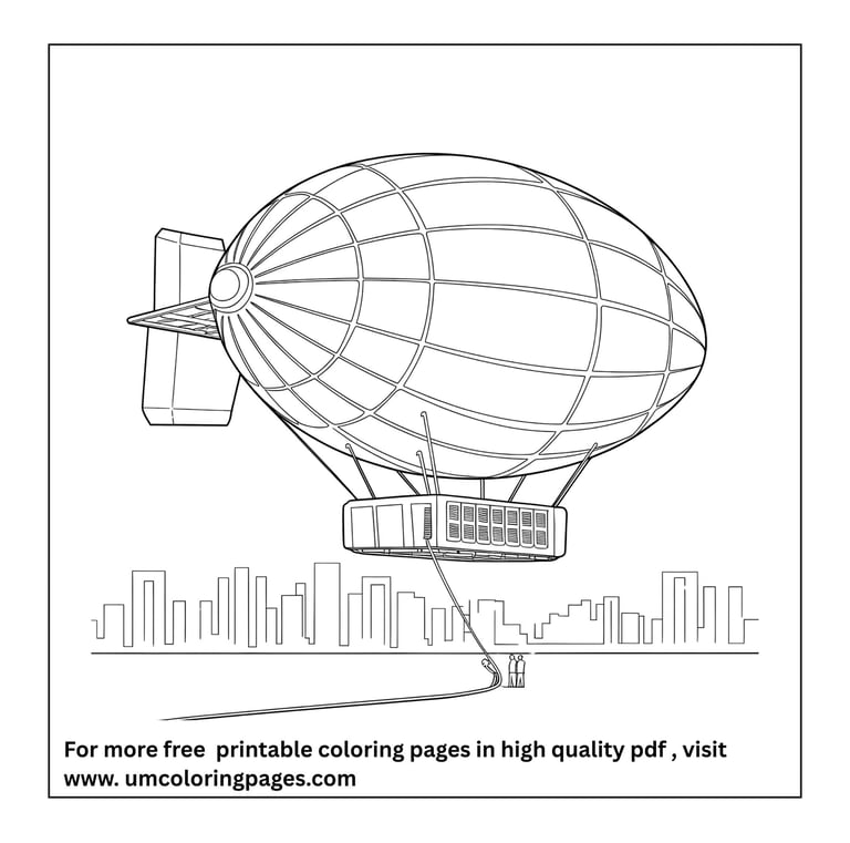 Blimp Coloring Pages – Enjoy fun blimp and airship coloring pages with free printable PDFs, perfect for kids who love flying vehicles and sky adventures.