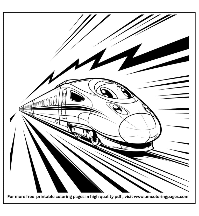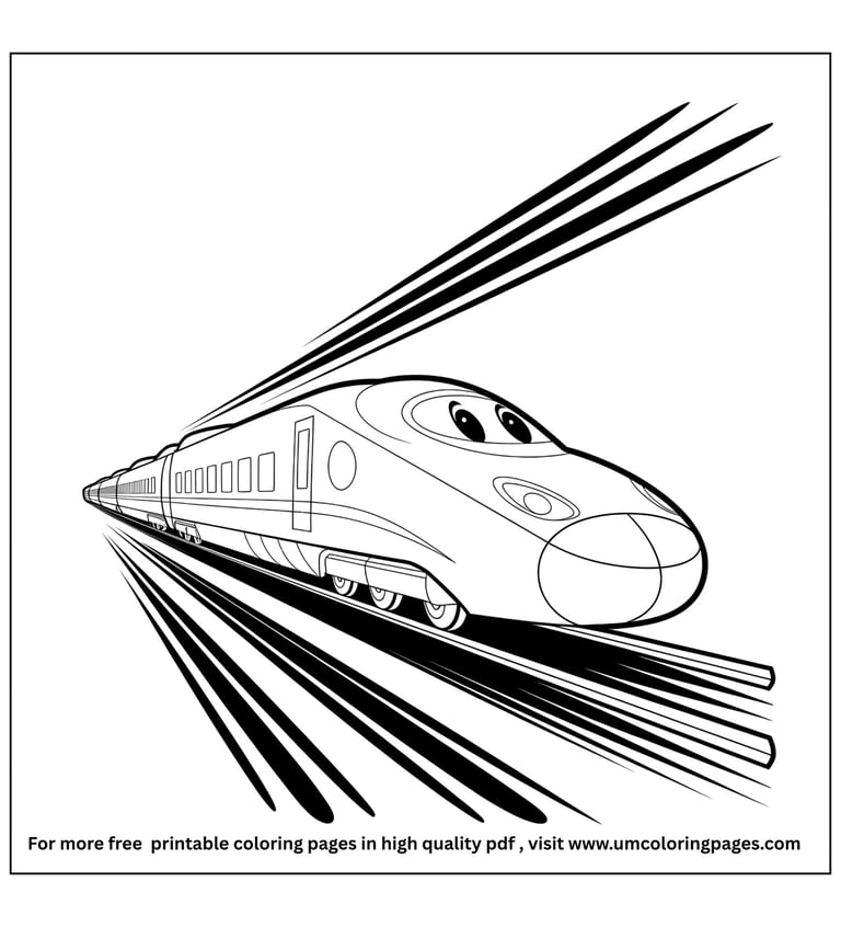 Free printable bullet train coloring pages for kids. Download high-speed train coloring sheets featuring modern railways and locomotives.