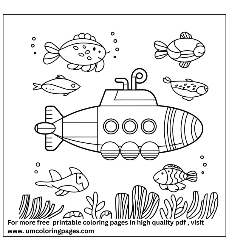Submarine Coloring Pages – Dive into submarine coloring pages with free printable PDFs, perfect for kids who love underwater vehicles, deep-sea exploration, and ocean adventures.